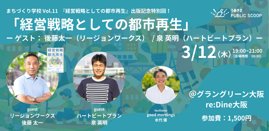 まちづくり学校 Vol.11 「経営戦略としての都市再生」 ー ゲスト: 後藤太一(リージョンワークス) / 泉 英明(ハートビートプラン)ー