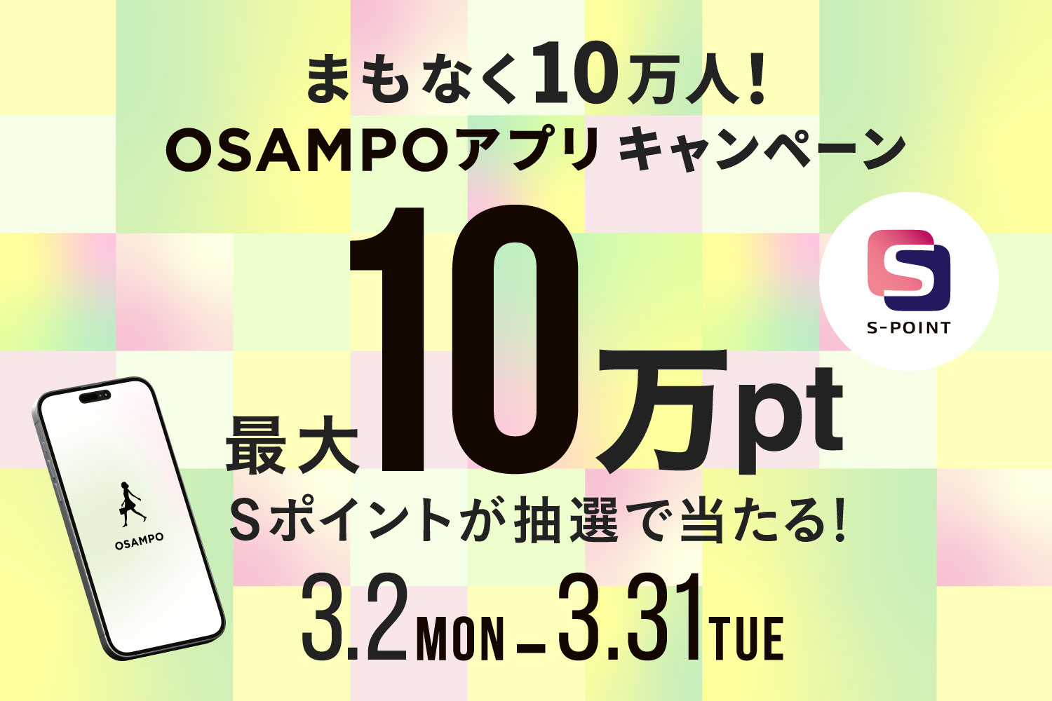 【OSAMPOアプリ】まもなく10万人ダウンロードキャンペーン