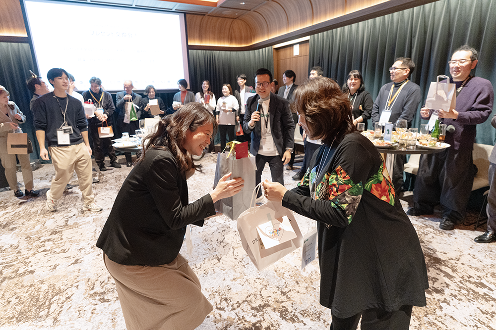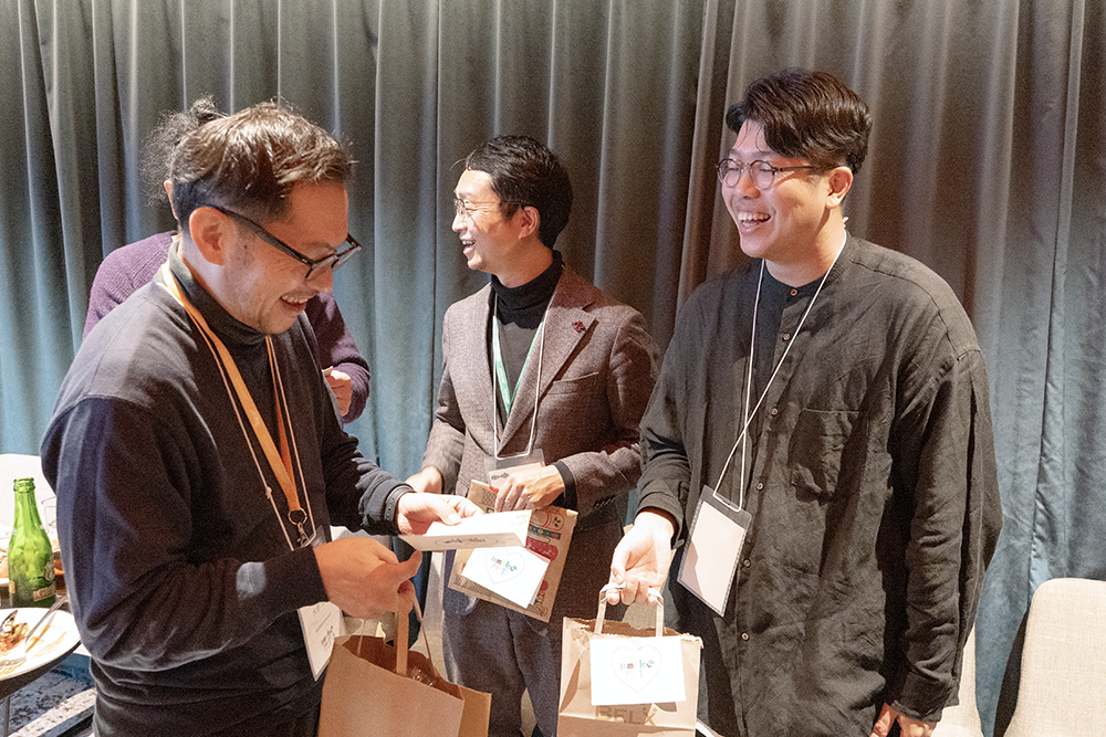 メッセージカードをきっかけにコミュニケーションが生まれ、新たなつながりが広がりました。美味しいお食事を楽しみながら、職種や専門性を超えた参加者同士が気兼ねなく交流いただけます。活発な意見交換や情報共有が行われ、熱気あふれる場となりました。