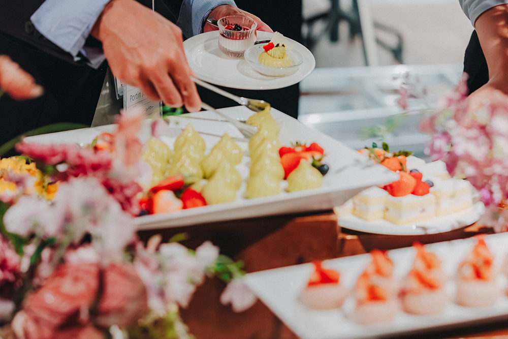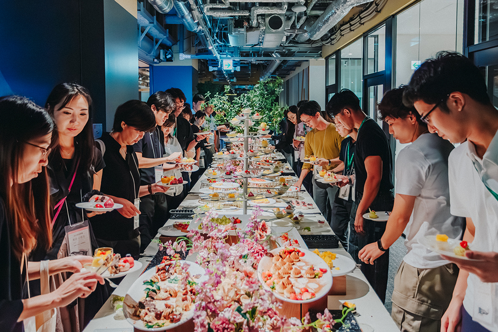 特別企画として、グラングリーン大阪から「THE JACKSON GARDEN」さまのスイーツをご提供いただきました。タワーにたくさんの豪華なスイーツが並び、大行列となりました。