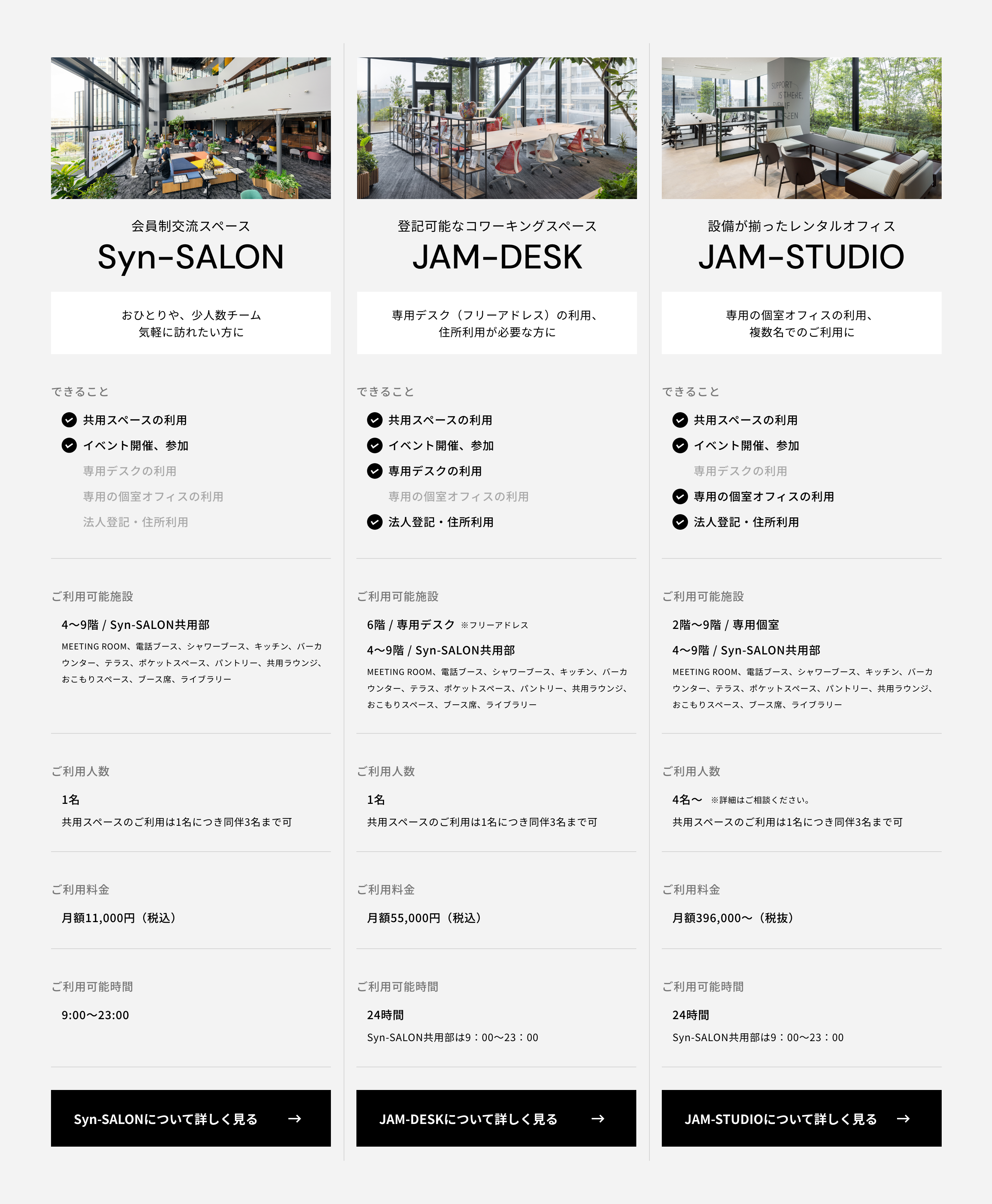 JAM-STUDIOは、約26㎡~約70㎡と幅広いラインナップのレンタルオフィスです。各区画には、机、椅子、収納棚、電話、インターネット環境を完備、ご入居日からご利用いただけます。