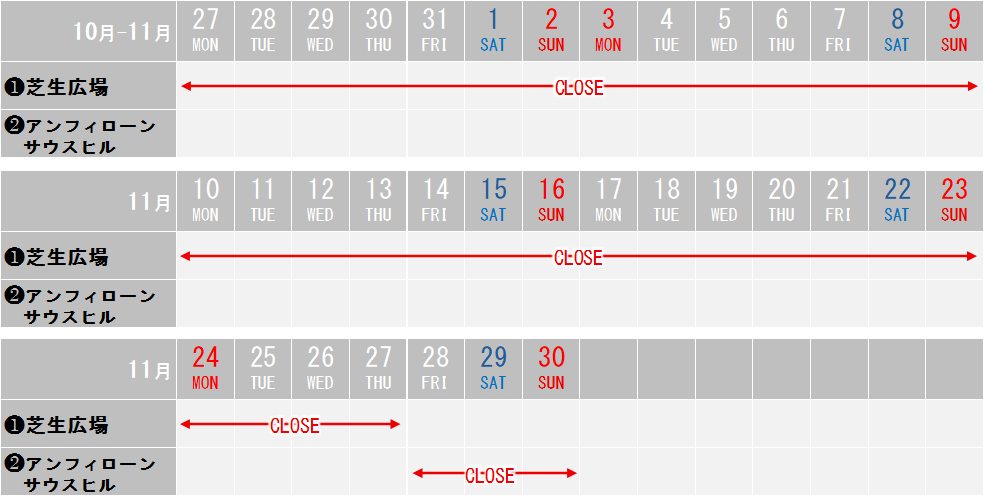 芝生広場は、うめきた公園のシンボルとして「ふかふかとした青々しい芝生」をお楽しみいただけるよう丁寧な維持管理を行っております。 芝生広場を一年中美しい状態に保つため、夏用の芝と冬用の芝を交互に育成させます。 冬用の芝への切り替えに伴い、一部の芝生エリアで立入制限を設けさせていただきます。 立入制限期間中は、冬に強い品種の芝生の育成を行います。