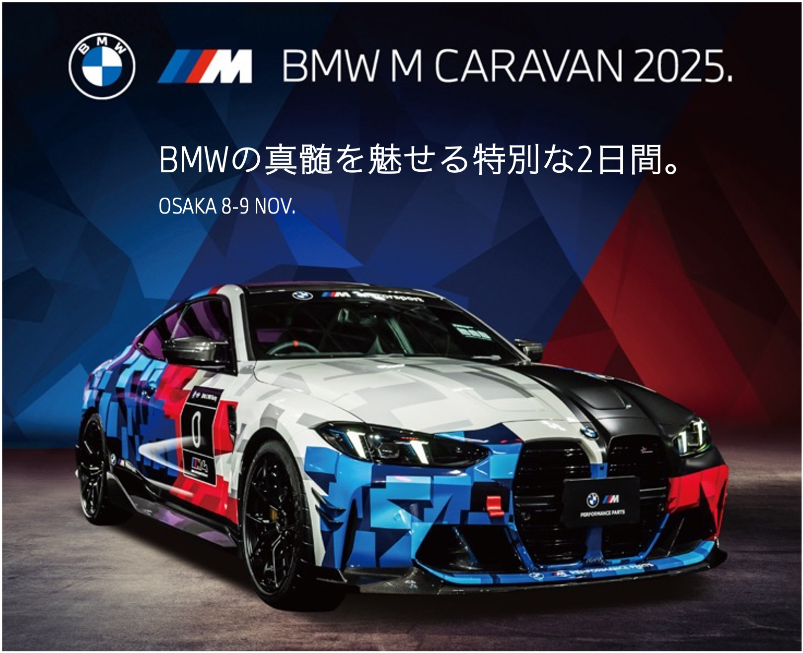 挑戦し続けるBMWの真髄を魅せる特別な2日間。 ご来場の皆様に「なぜ、BMWなのか」を体感できるコンテンツをご用意。 会場にはBMW Mパフォーマンス・パーツをフル装備した特別モデルを多数展示します。 また、プロレーシングドライバーの荒聖司氏を迎えてBMWの魅力をお伝えするトークショーも開催。 皆様のお越しをお待ちしております。