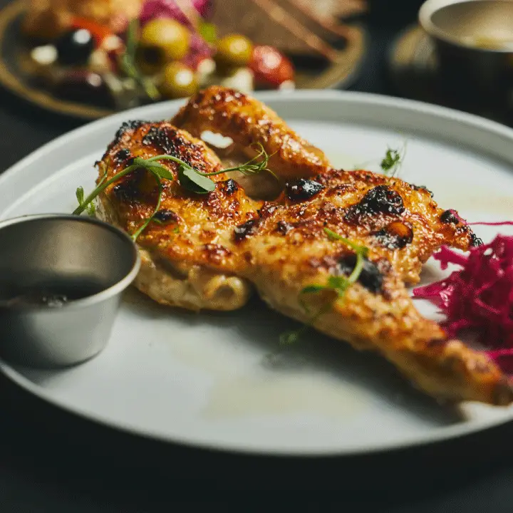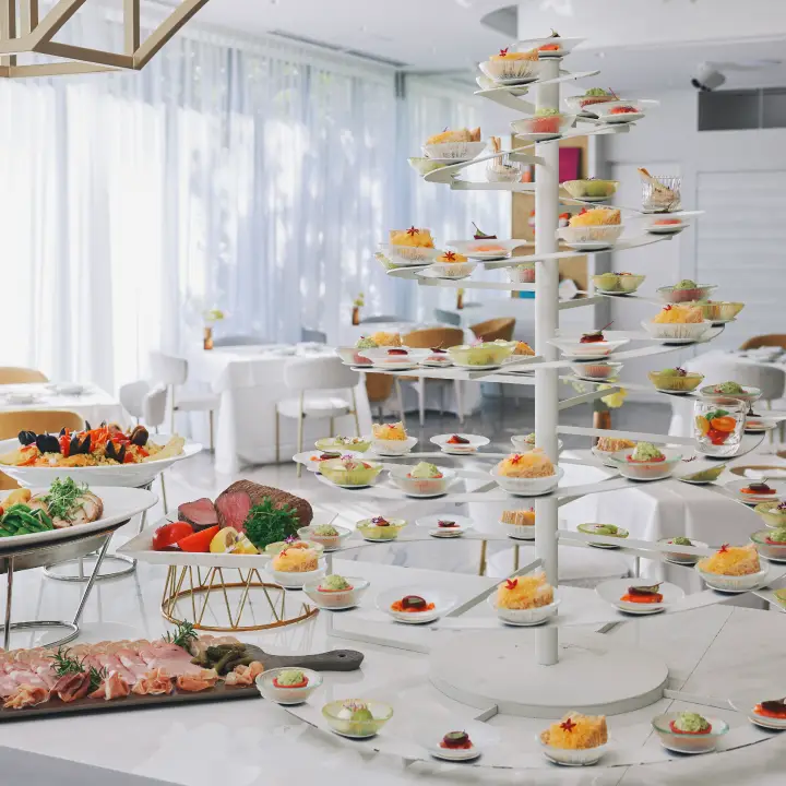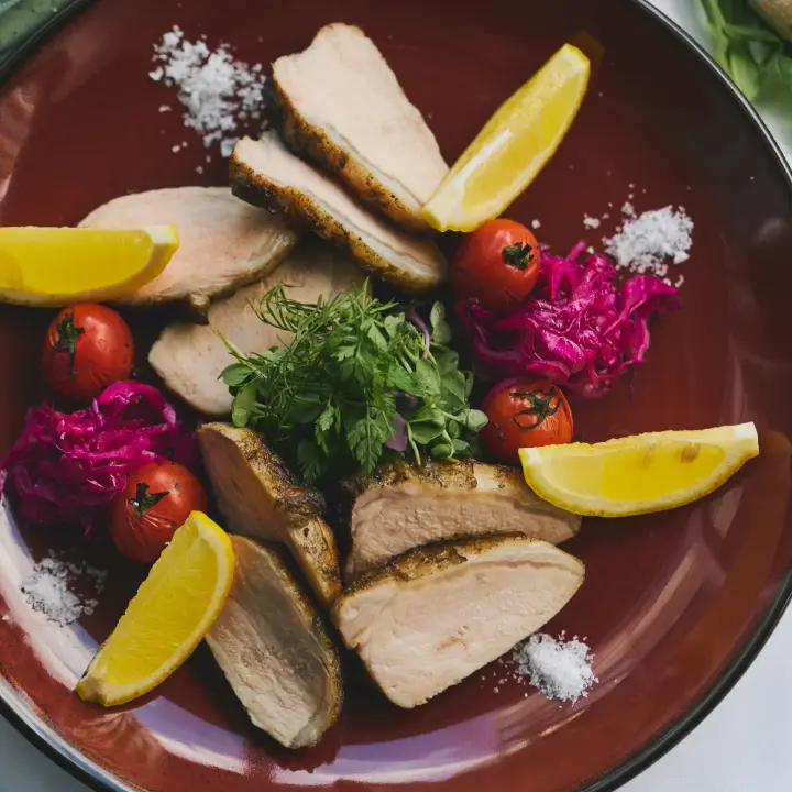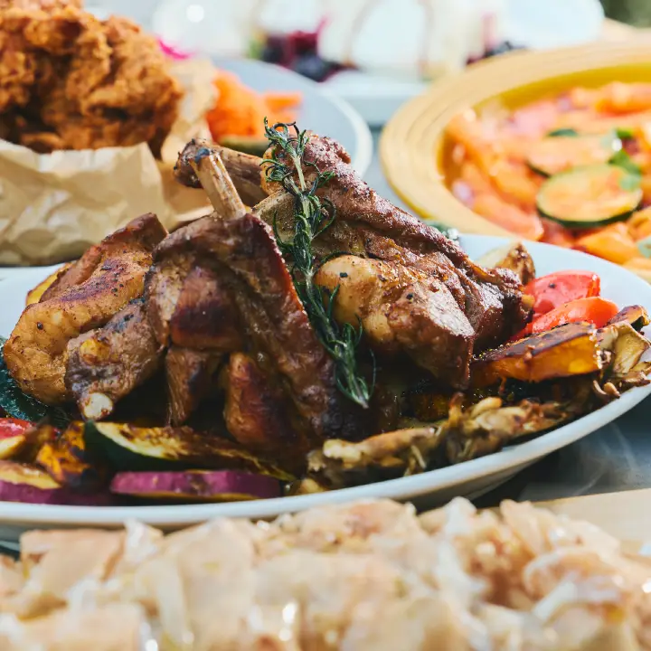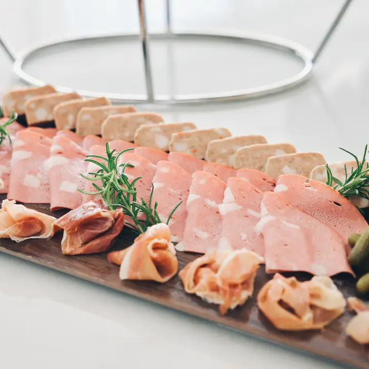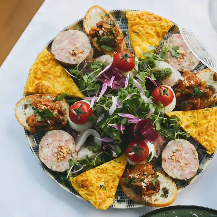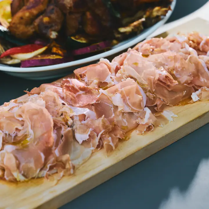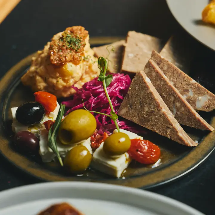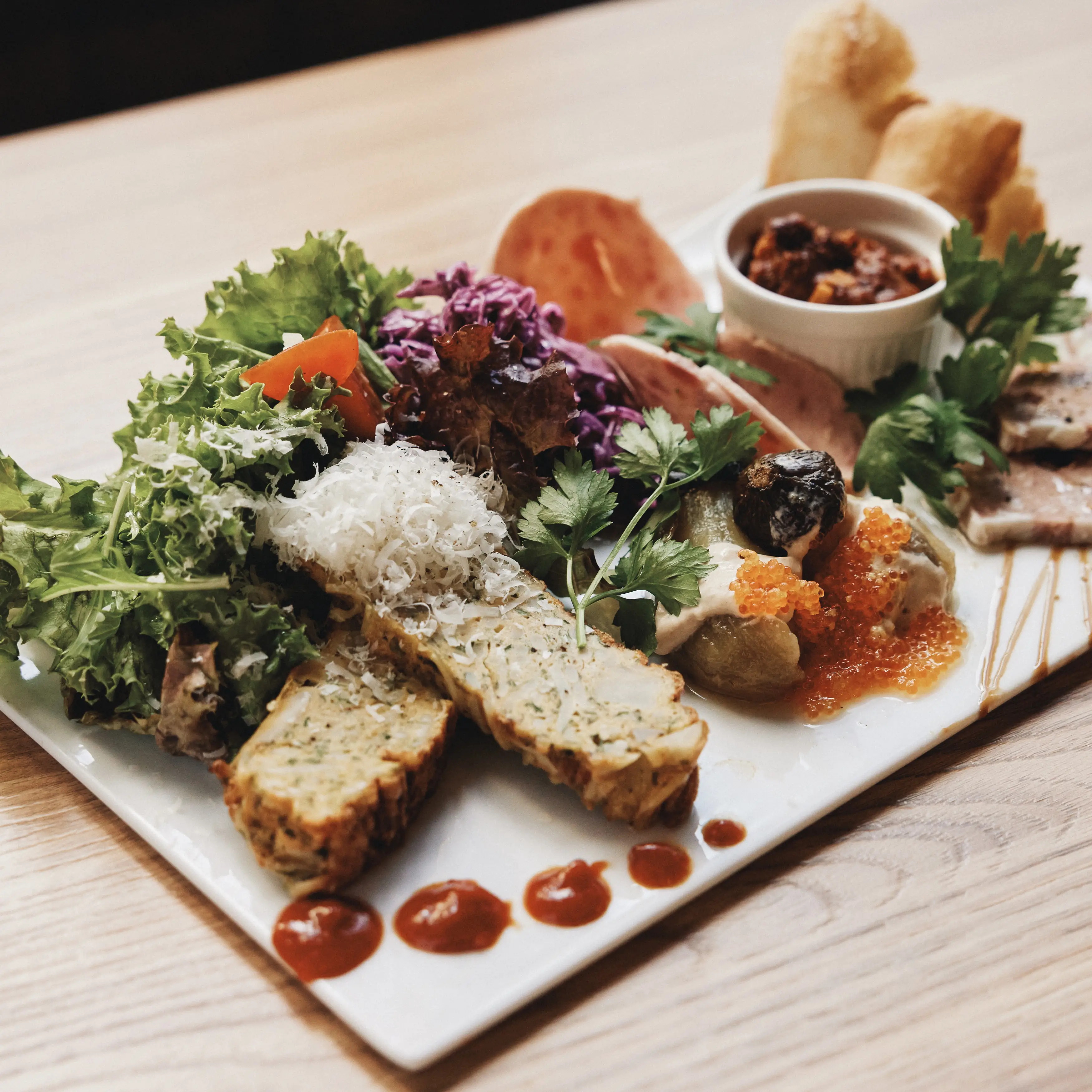 - 前菜(鶏肉のエスカベッシ& ローストビーフ)