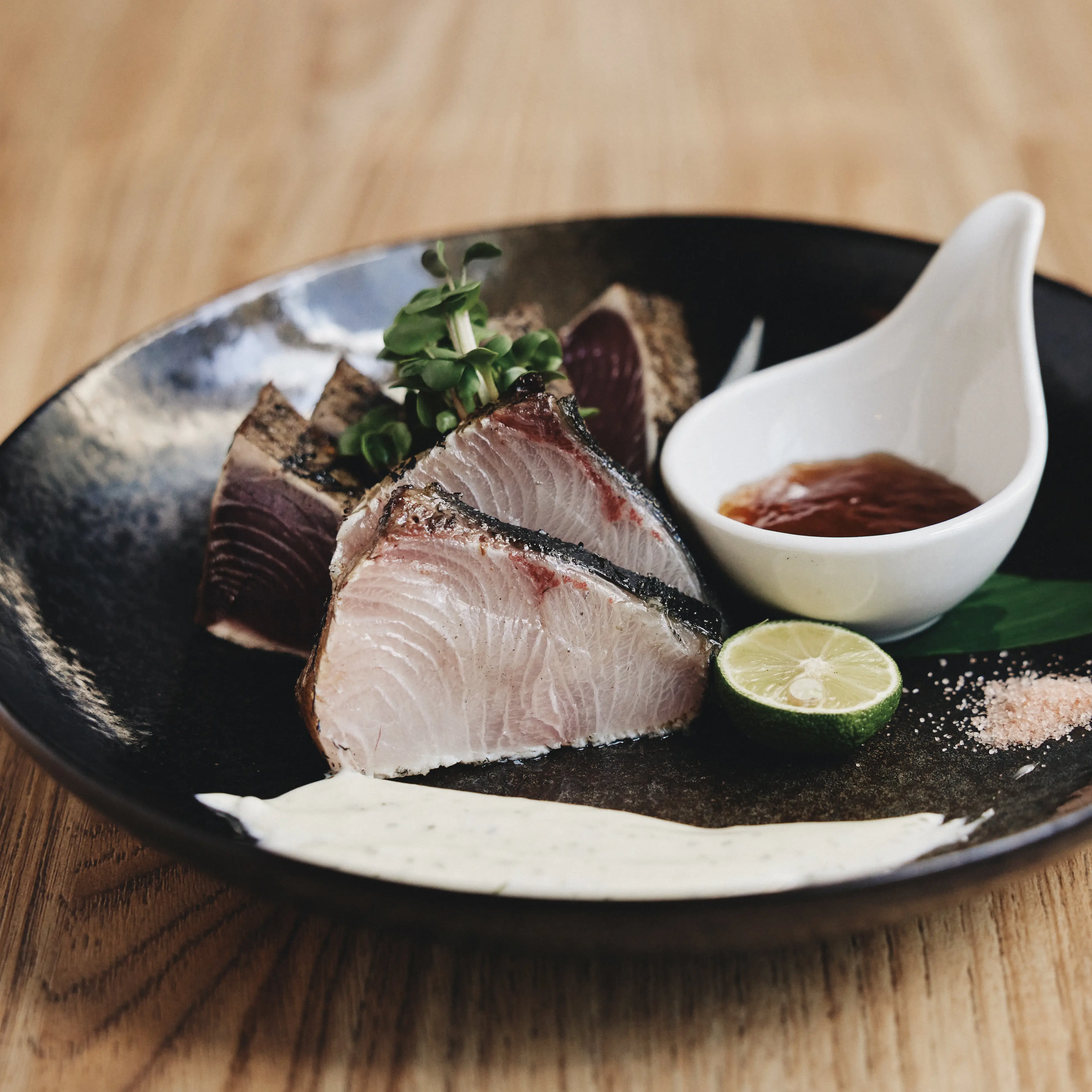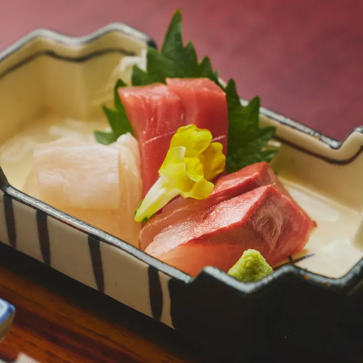 - 先付け イタリア産キャビアと赤身の昆布締め