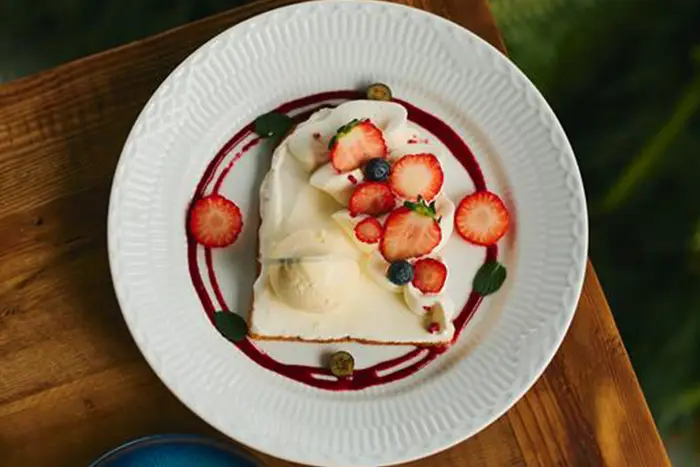 (写真4枚目)こんがりと焼いたパンの上に、濃厚な北海道根釧ミルクの生クリームと、和歌山県産まりひめいちごを贅沢にトッピング。いちごのショートケーキのようなスモーブロー。