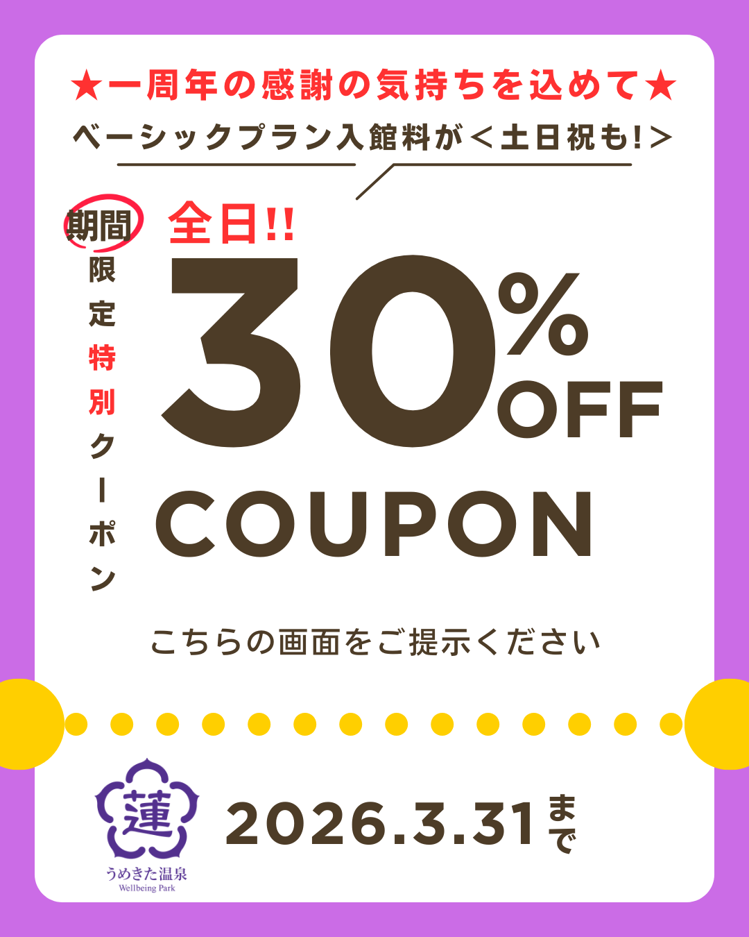【ベーシックプラン 特別ご優待】 おかげさまで一周年✨ — 梅田の天然温泉で、新生活のパワーチャージ!