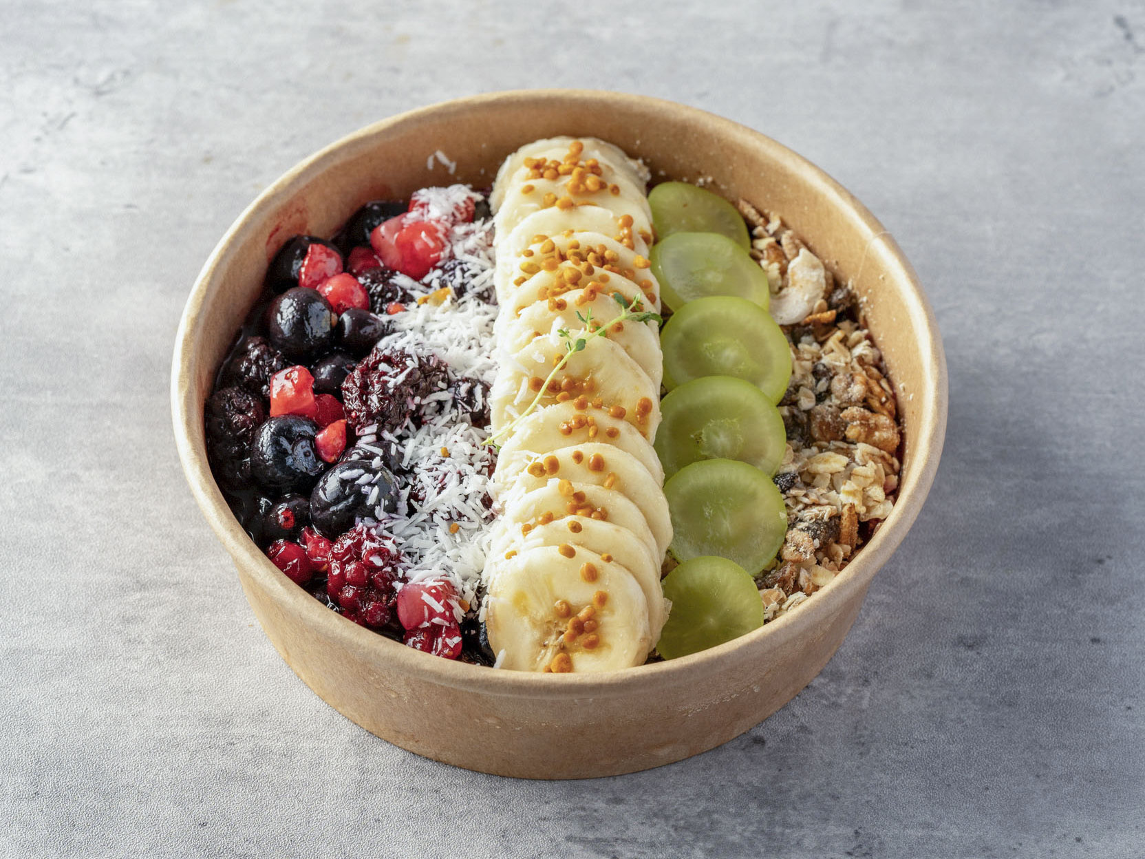 サンバゾン製アサイーを使用した濃厚なアサイースムージーに旬のシャインマスカット、ベリー、ココナッツ、ビーポーレンなどをトッピング。低GI&ローカロリーなアガベシロップなどでヴィーガン仕様に仕上げました。【Vegan】 価格:1,680円(税込)